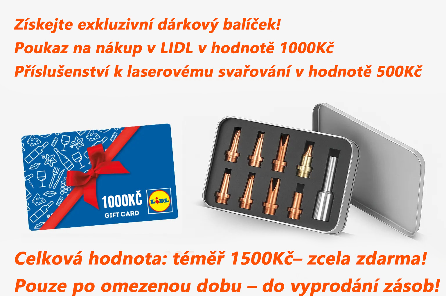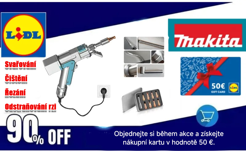 Spawarka laserowa Makita 4 w 1: Oszczędź 90% – cena początkowa 19 000 CZK, teraz tylko 1900 CZK! W zestawie znajduje się również bon zakupowy LIDL o wartości 1000 CZK i zestaw akcesoriów (o wartości 500 CZK). Pozostało tylko 83 sztuki – kup teraz!
